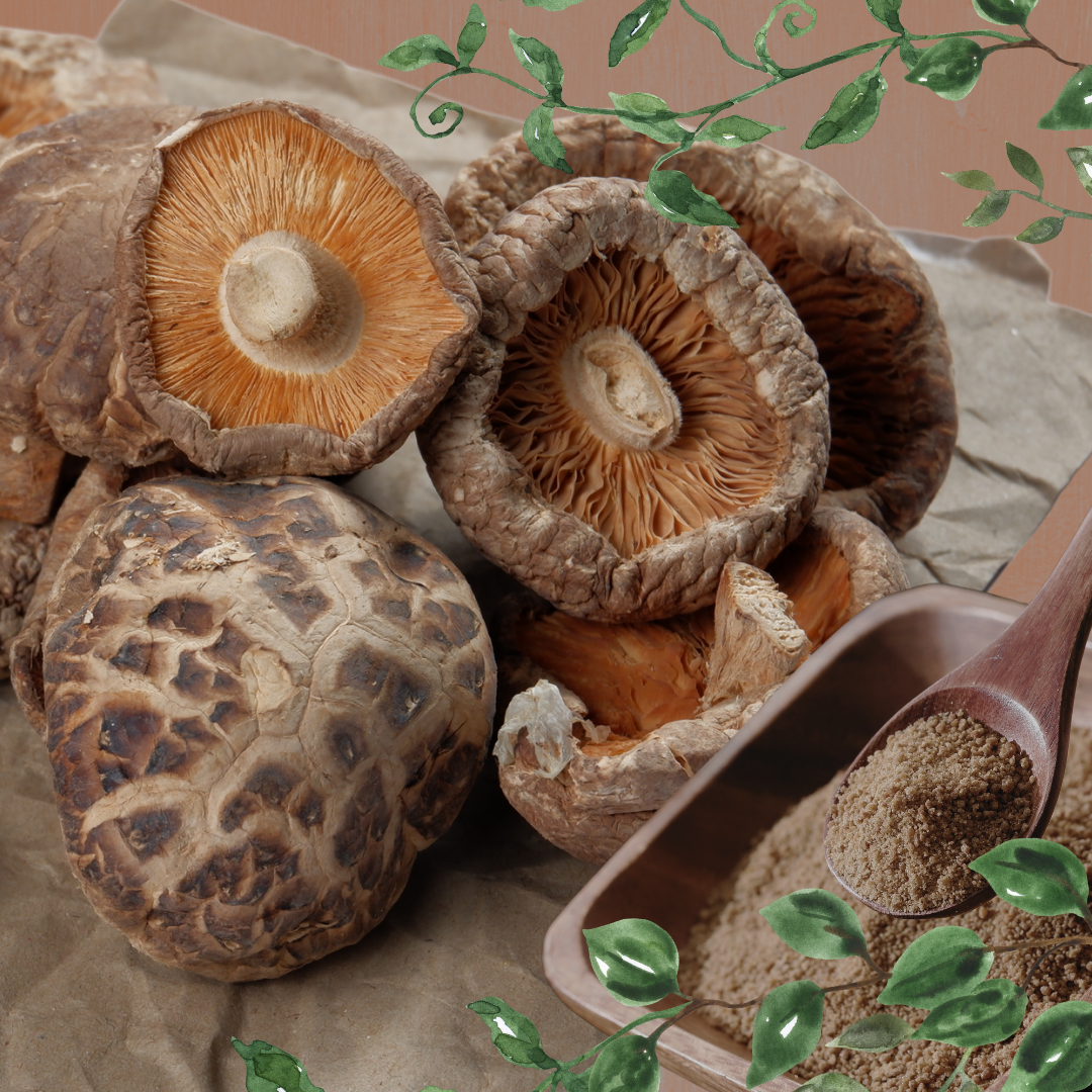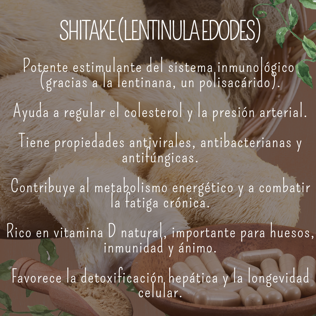 El shitake (Lentinula edodes) es un hongo originario de Asia con una larga tradición en la medicina oriental. Hoy en día, es reconocido en todo el mundo por sus múltiples beneficios para la salud. Rico en vitaminas del complejo B, vitamina D y minerales como el zinc, el shitaque es también una fuente potente de compuestos bioactivos como los beta-glucanos, que fortalecen el sistema inmunológico.
